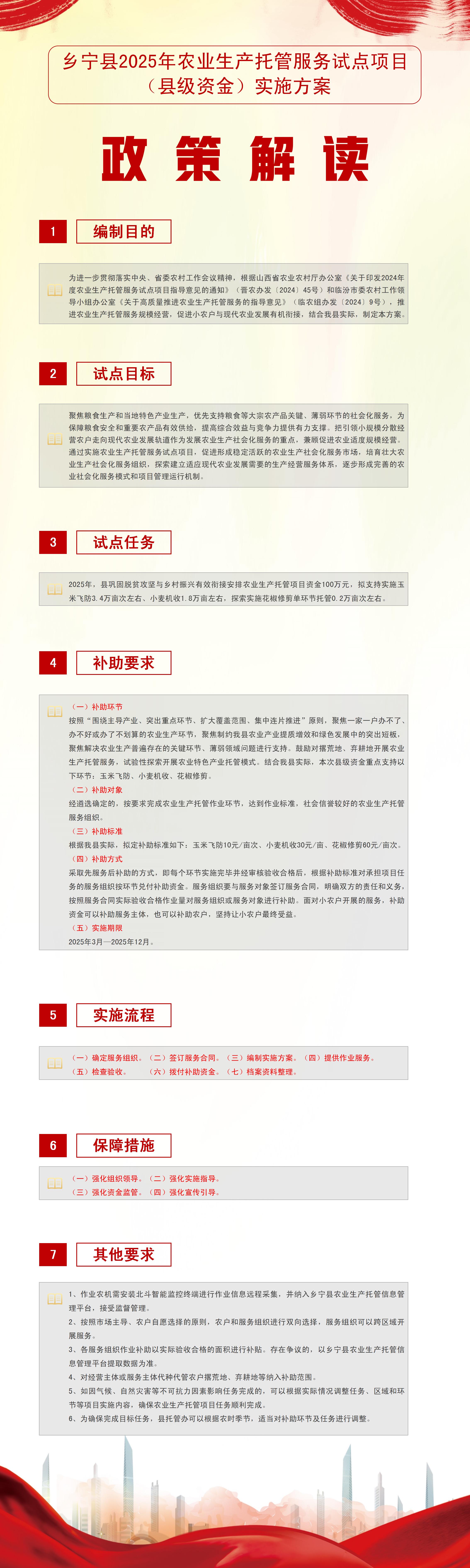 【圖解】鄉寧縣人民政府辦公室關于印發《鄉寧縣2025年農業生產托管服務試點項目(縣級資金)實施方案》的通知