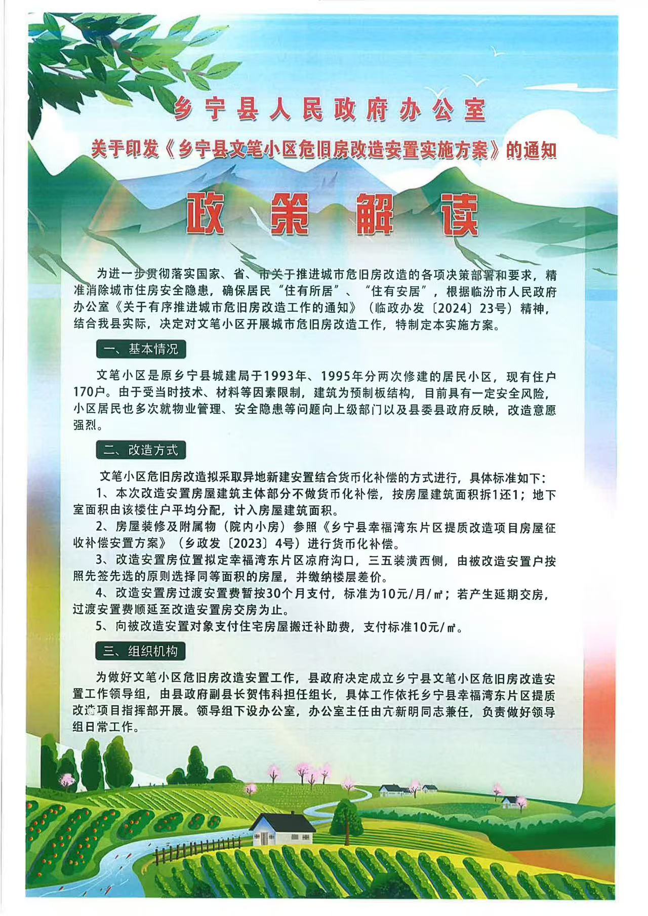 【圖解】鄉寧縣人民政府辦公室關于印發鄉寧縣文筆小區危舊房改造安置實施方案的通知